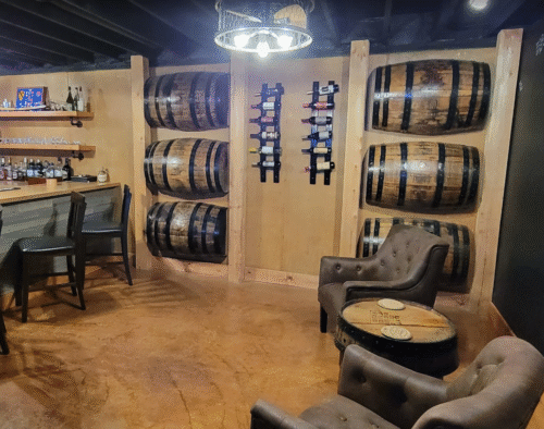 Our half whiskey barrel is an authentic Refurbished Bourbon Barrel cut in half to sit flush against the wall.