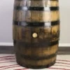Refurbished bourbon barrel with black metal rings