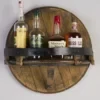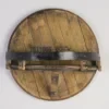 Our barrel lid shelf is a great way to display your bottles without taking up as much space as a barrel or other shelving options we offer. We make these shelves from authentic bourbon whiskey barrel lids and staves. The shelf is very strong and sturdy. Metal ring around the front is painted black. Easy installation and hangs on your wall with a French cleat. The French cleat is rated to hold up to 120 lbs.