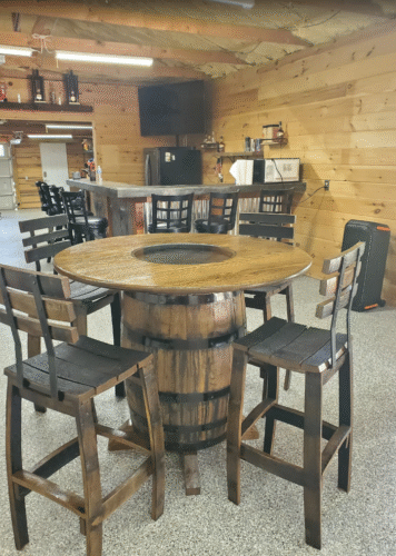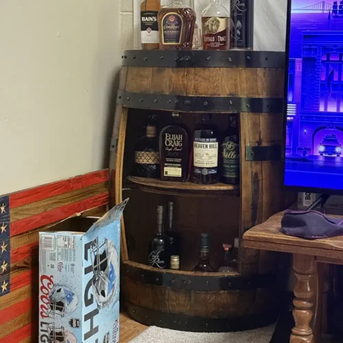 Show your pride in the USA by displaying a handmade barrel stave American flag. The flag is made from barrel staves that are mounted to plywood. Choose from our 2 standard sizes, or ask us for any size you want up to 8 ft in length and we can do it for you.