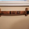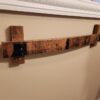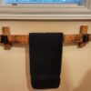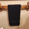 Designed to hold 1 or 2 hand towels, our barrel stave towel rack puts a rustic touch in your bathroom.  Approximate dimensions are 22″ from end to end with about 20″ between the two vertical pieces of wood that mount to your wall. We will paint the metal rings black.
