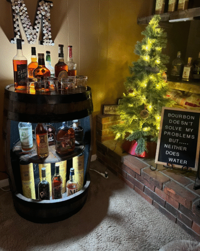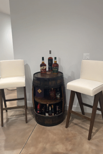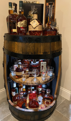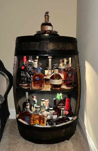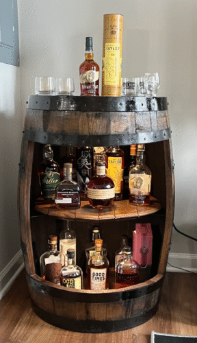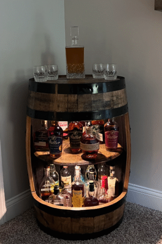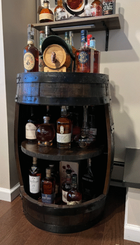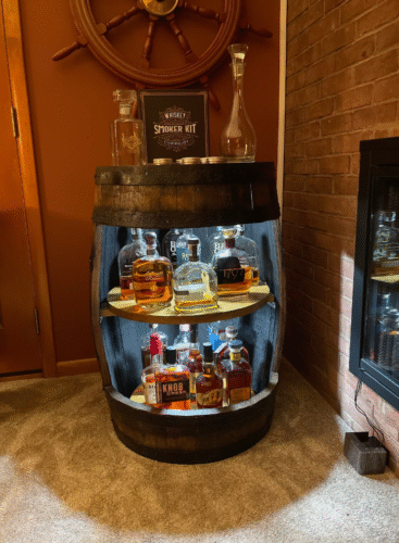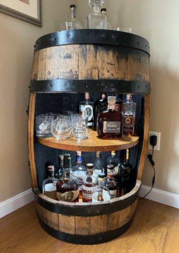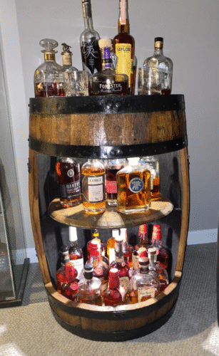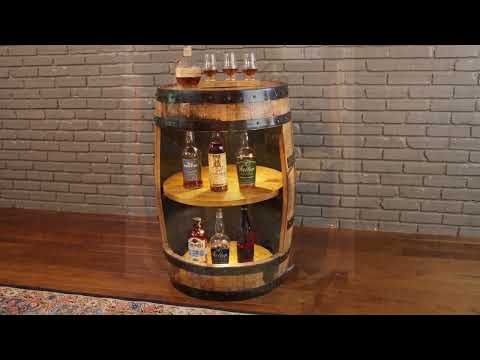 Bourbon Whiskey Barrel Bar Cabinet – Open Front, No Doors