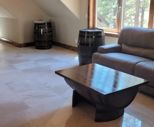The coffee table has excellent craftsmanship. Mike provided professional service. Nice work Home and Garden Barrels on our bourbon barrel coffee table!