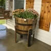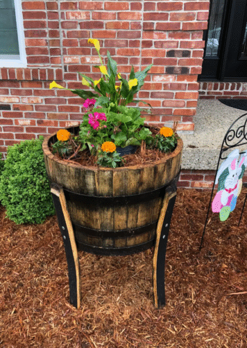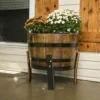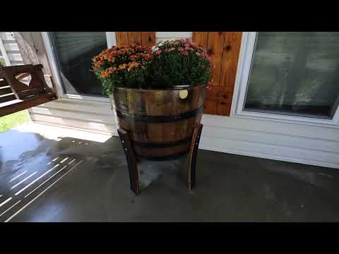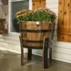 Our elevated barrel planters are made from authentic, locally sourced bourbon barrel, cut in half and elevated on stave legs. Galvanized bolts, washers, and nuts to fasten legs to barrel.  Elevated planter can be ordered to stand 31 or 25 inches tall. Exterior paint and exterior finish applied.