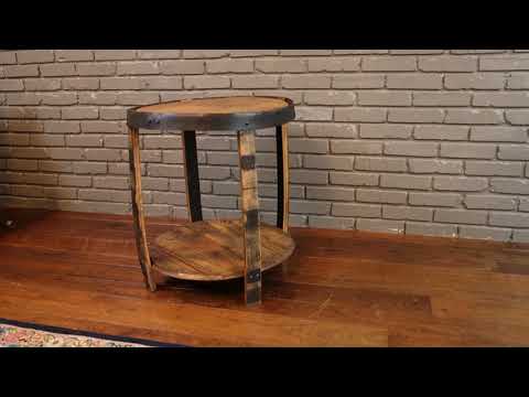 This whiskey barrel end table is a minimalist version of the first end table we offered. This item is made from authentic barrel staves, barrel lids, and a barrel hoops to accent the piece. The barrel hoops are painted black. Our double bourbon whiskey barrel end table makes a great addition to a home bar, man cave, or living room.