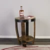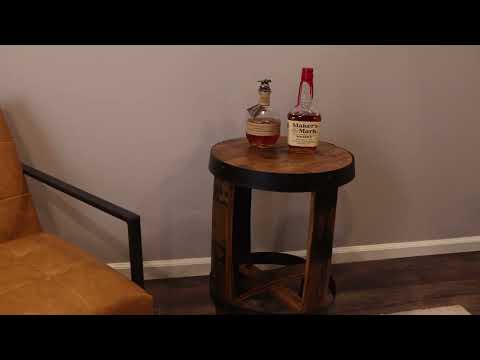 nThis end table features authentic barrel heads as the top and bottom shelf, authentic barrel staves for the legs, and rings from a whiskey barrel as accents on the table. The top barrel lid is cut to bout 17 inches diameter, and the bottom will be about 13 inches diameter. Barrel rings are painted black. We offer three colors (polyurethane only, chestnut, and walnut) and any height between 20 and 24 inches tall. You can choose if you want the distillery markings on the top shelf of the miniature barrel table or have it blank.